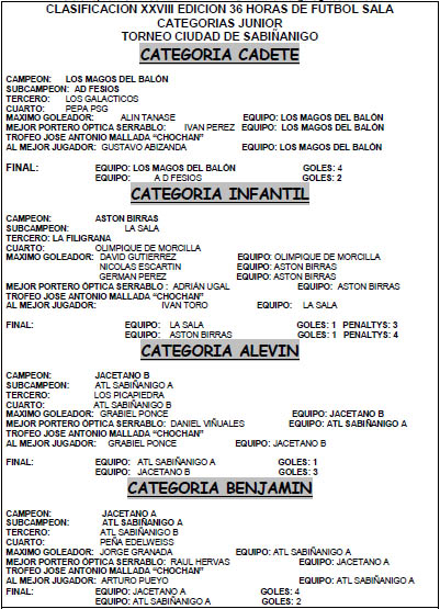 GANADORES XXVIII 36 HORAS DE FÚTBOL SALA